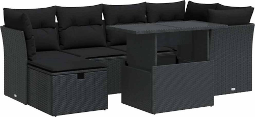 vidaXL 7-cz. zestaw wypoczynkowy do ogrodu, z poduszkami, czarny