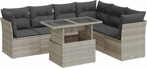 vidaXL 7-cz. zestaw wypoczynkowy do ogrodu, z poduszkami, jasnoszary