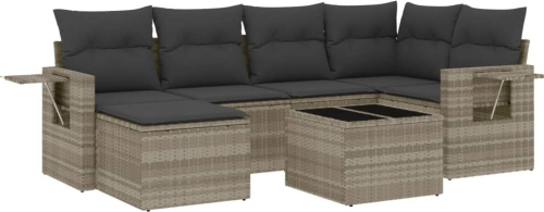 vidaXL 7-cz. zestaw wypoczynkowy do ogrodu, z poduszkami, jasnoszary