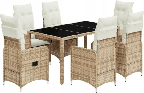 vidaXL 7-częściowy zestaw mebli bistro z poduszkami, beżowy, polirattan