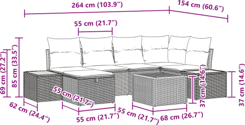 vidaXL 7-częściowy zestaw sof ogrodowych z poduszkami Beżowy Polirattan