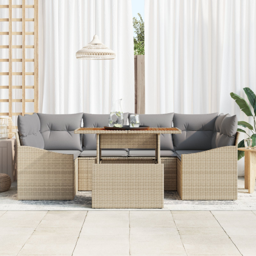 vidaXL 7-częściowy zestaw sof ogrodowych z poduszkami beżowy polirattan