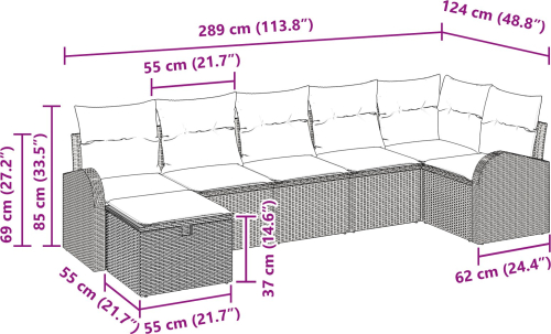 vidaXL 7-częściowy zestaw sof ogrodowych z poduszkami - brązowy polirattan