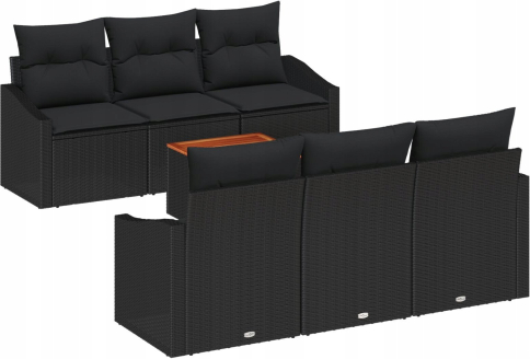vidaXL 7-częściowy zestaw sof ogrodowych z poduszkami Czarny Polirattan Akacja