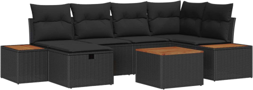 vidaXL 7-częściowy zestaw sof ogrodowych z poduszkami Czarny Polirattan