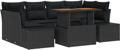 vidaXL 7-Częściowy zestaw sof ogrodowych z poduszkami czarny polirattan