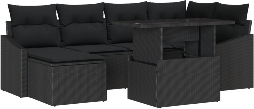 vidaXL 7-częściowy zestaw sof ogrodowych z poduszkami czarny polirattan