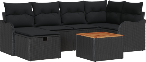 vidaXL 7-częściowy zestaw sof ogrodowych z poduszkami Czarny Polirattan