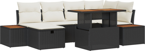 vidaXL 7-częściowy Zestaw Sof Ogrodowych z Poduszkami Czarny Poly Rattan