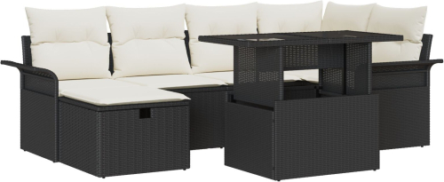 vidaXL 7-częściowy zestaw sof ogrodowych z poduszkami czarny rattan