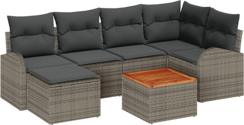 vidaXL 7-częściowy zestaw sof ogrodowych z poduszkami Szary Polirattan Akacja