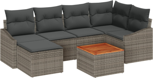 vidaXL 7-częściowy zestaw sof ogrodowych z poduszkami Szary polirattan akacjowy