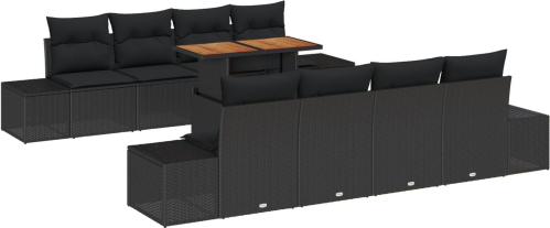 vidaXL 7-częściowy zestaw sof ogrodowych z poduszkami w czarnym polirattanie