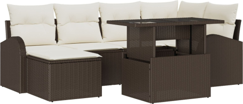 vidaXL 7-częściowy zestaw sofy ogrodowej z poduszkami brązowy z poly rattanu