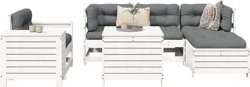 vidaXL 7-częściowy zestaw wypoczynkowy do ogrodu, biały, lite drewno sosnowe