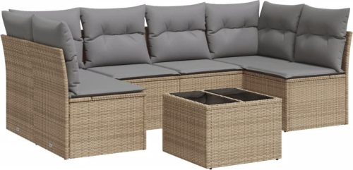 vidaXL 7-częściowy zestaw wypoczynkowy do ogrodu, z poduszkami, beżowy