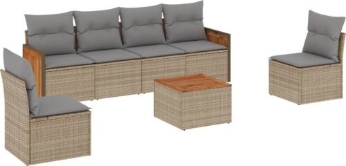 vidaXL 7-częściowy zestaw wypoczynkowy do ogrodu, z poduszkami, beżowy