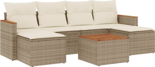 vidaXL 7-częsciowy zestaw wypoczynkowy do ogrodu, z poduszkami, beżowy