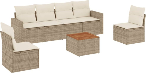 vidaXL 7-częściowy zestaw wypoczynkowy do ogrodu, z poduszkami, beżowy