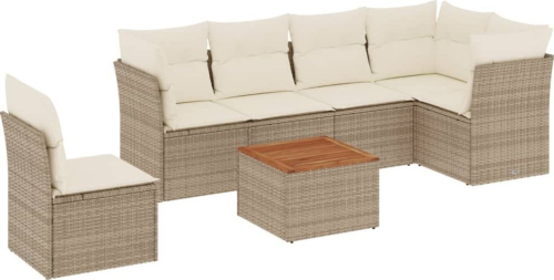 vidaXL 7-częściowy zestaw wypoczynkowy do ogrodu, z poduszkami, beżowy