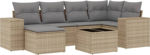 vidaXL 7-częściowy zestaw wypoczynkowy do ogrodu, z poduszkami, beżowy