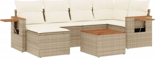 vidaXL 7-częściowy zestaw wypoczynkowy do ogrodu, z poduszkami, beżowy