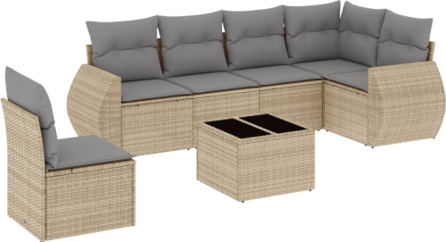 vidaXL 7-częściowy zestaw wypoczynkowy do ogrodu, z poduszkami, beżowy