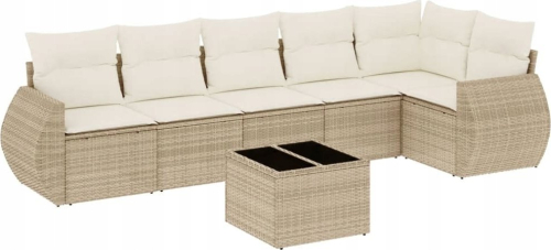vidaXL 7-częściowy zestaw wypoczynkowy do ogrodu, z poduszkami, beżowy
