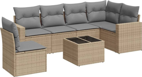 vidaXL 7-częściowy zestaw wypoczynkowy do ogrodu, z poduszkami, beżowy