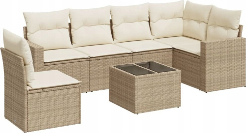 vidaXL 7-częściowy zestaw wypoczynkowy do ogrodu, z poduszkami, beżowy