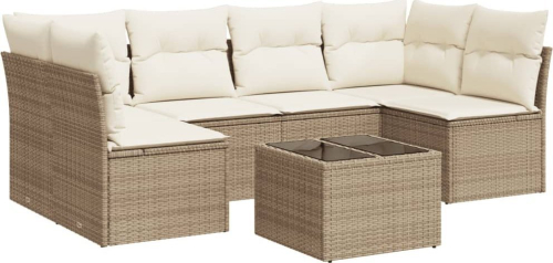 vidaXL 7-częściowy zestaw wypoczynkowy do ogrodu, z poduszkami, beżowy