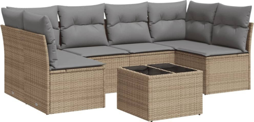 vidaXL 7-częściowy zestaw wypoczynkowy do ogrodu, z poduszkami, beżowy