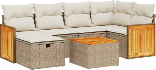 vidaXL 7-częsciowy zestaw wypoczynkowy do ogrodu, z poduszkami, beżowy
