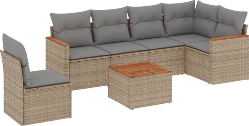 vidaXL 7-częściowy zestaw wypoczynkowy do ogrodu, z poduszkami, beżowy