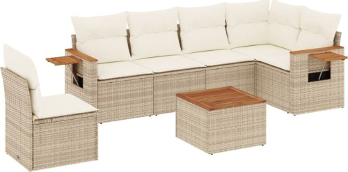 vidaXL 7-częściowy zestaw wypoczynkowy do ogrodu, z poduszkami, beżowy