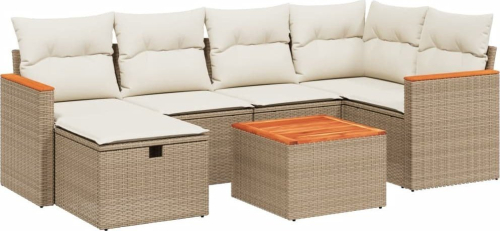 vidaXL 7-częsciowy zestaw wypoczynkowy do ogrodu, z poduszkami, beżowy