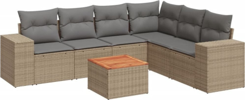 vidaXL 7-częściowy zestaw wypoczynkowy do ogrodu, z poduszkami, beżowy