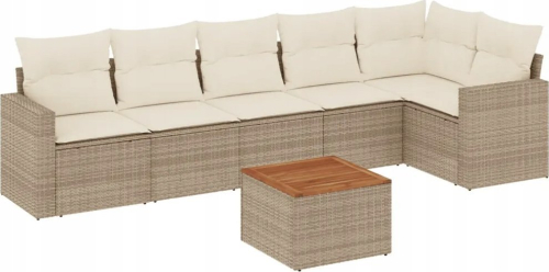 vidaXL 7-częsciowy zestaw wypoczynkowy do ogrodu, z poduszkami, beżowy