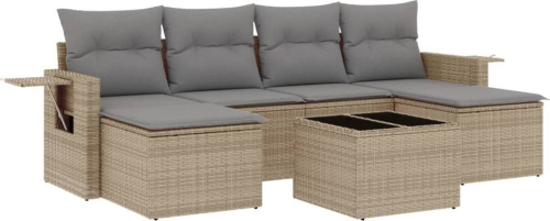 vidaXL 7-częściowy zestaw wypoczynkowy do ogrodu, z poduszkami, beżowy
