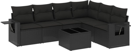 vidaXL 7-częściowy zestaw wypoczynkowy do ogrodu, z poduszkami, czarny