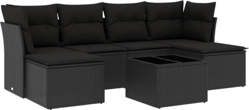 vidaXL 7-częściowy zestaw wypoczynkowy do ogrodu, z poduszkami, czarny