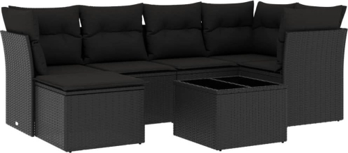 vidaXL 7-częściowy zestaw wypoczynkowy do ogrodu, z poduszkami, czarny