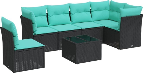vidaXL 7-częściowy zestaw wypoczynkowy do ogrodu, z poduszkami, czarny