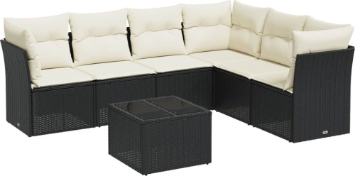 vidaXL 7-częściowy zestaw wypoczynkowy do ogrodu, z poduszkami, czarny
