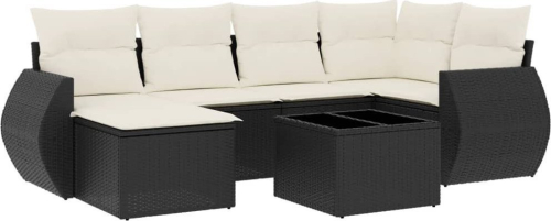 vidaXL 7-częściowy zestaw wypoczynkowy do ogrodu, z poduszkami, czarny
