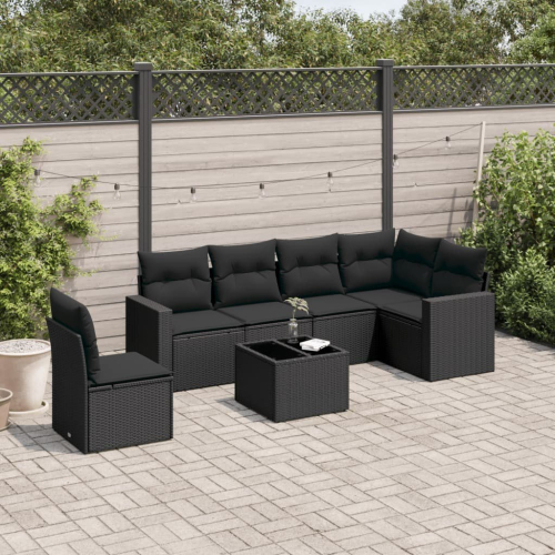 vidaXL 7-częściowy zestaw wypoczynkowy do ogrodu, z poduszkami, czarny