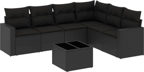 vidaXL 7-częściowy zestaw wypoczynkowy do ogrodu, z poduszkami, czarny