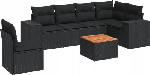 vidaXL 7-częściowy zestaw wypoczynkowy do ogrodu, z poduszkami, czarny