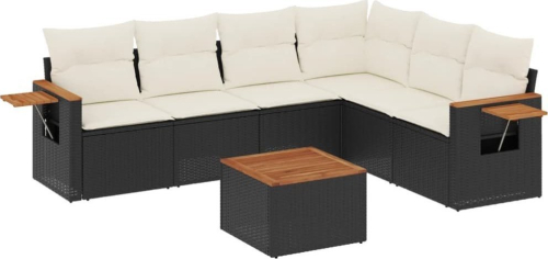vidaXL 7-częściowy zestaw wypoczynkowy do ogrodu, z poduszkami, czarny