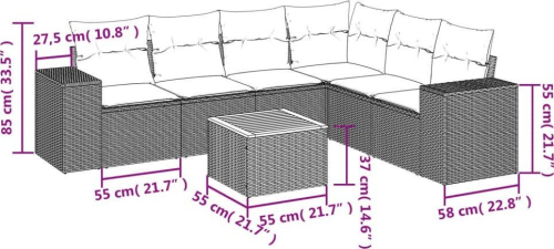 vidaXL 7-częściowy zestaw wypoczynkowy do ogrodu, z poduszkami, czarny